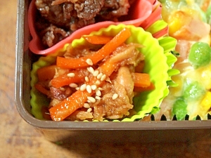 便利すぎる作り置き にんじんとツナの蒸し焼きキンピラ のお弁当 朝時間 Jp